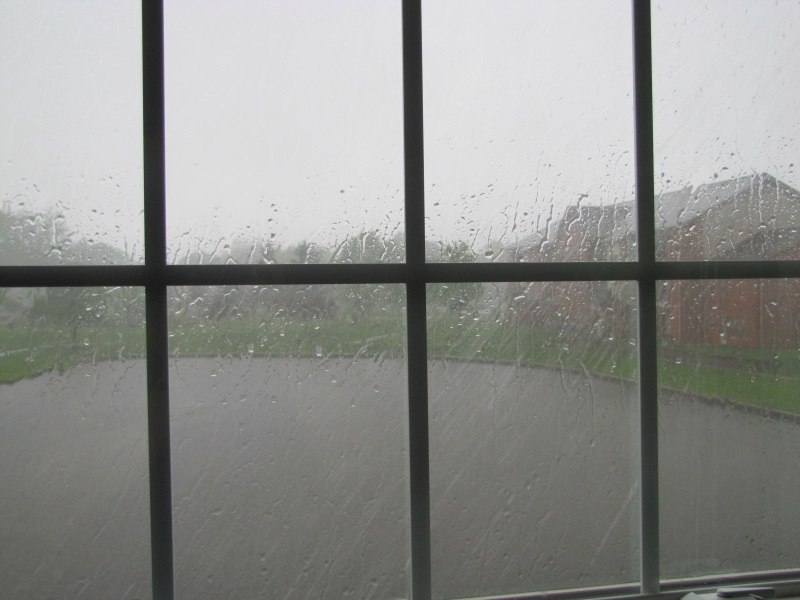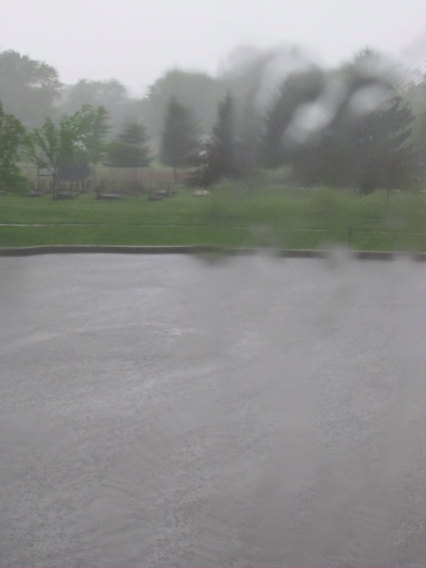 Just the other evening we had a torrential downpour. It only lasted about 10 minutes but it was a white out of rain while it did. By the time I grabbed a camera it was letting up some, although the rain streaks at least suggest some of it.