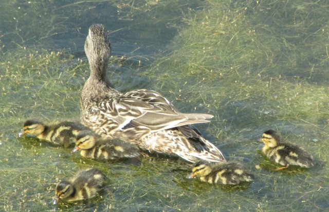 Jun. 21st, 2020 12:46 pmI've been on the lookout for babies for a while now, but yesterday was the first time I saw some on our lake. As you can see from these photos it is utterly clogged with algae. For the ducks though this is swimming in a buffet.
