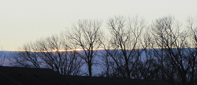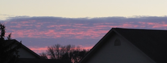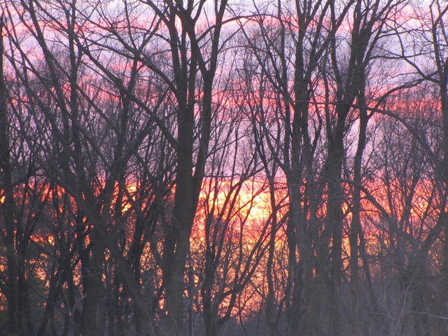 A farther away look at the cloud locations. And below, a shot through the trees of the multicolor sky.