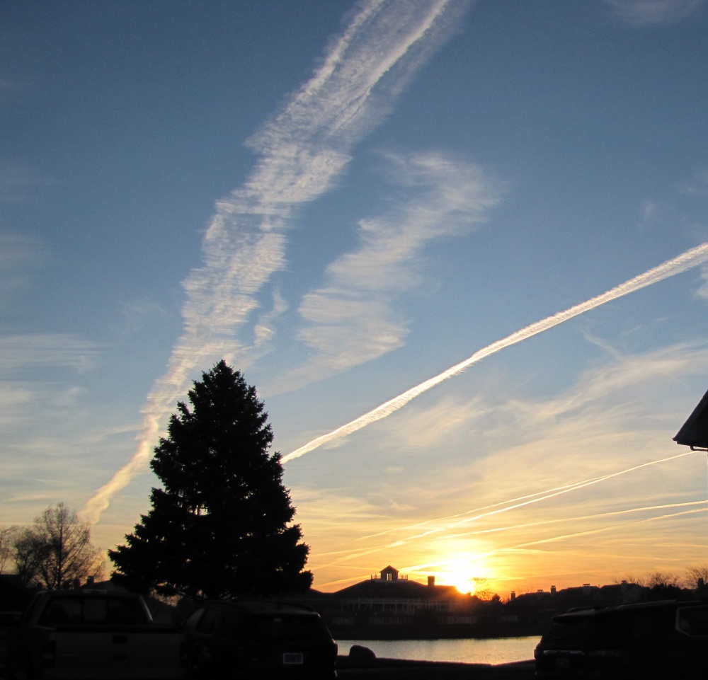 Dec. 15th, 2020 02:43 pmBy chance I was up early to get to the grocery store (an effort that was worth it for the empty aisles and checkout area) and saw a rather interesting sunrise. I've posted in the past month or so a contrail sunset. Apparently the jets have been very active because not only have we spotted them almost every day, but this morning it was clear they had been out at dawn. The sky was covered with cloudy streaks which went on so far it made the sky seem like a bowl.