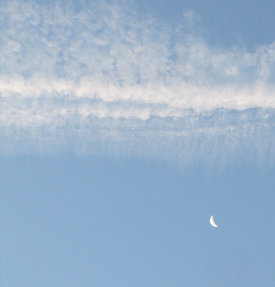 In the bottom pic, I spotted the moon below a dissipating trail.