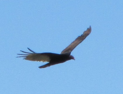 One day we saw a large bird flying by and thought at first it was a hawk. But it was a vulture being chased by various crows in a very noisy event. It kept swooping near the lake, but not for any reason we could see. However a pair of geese went on alert sheltering their babies.