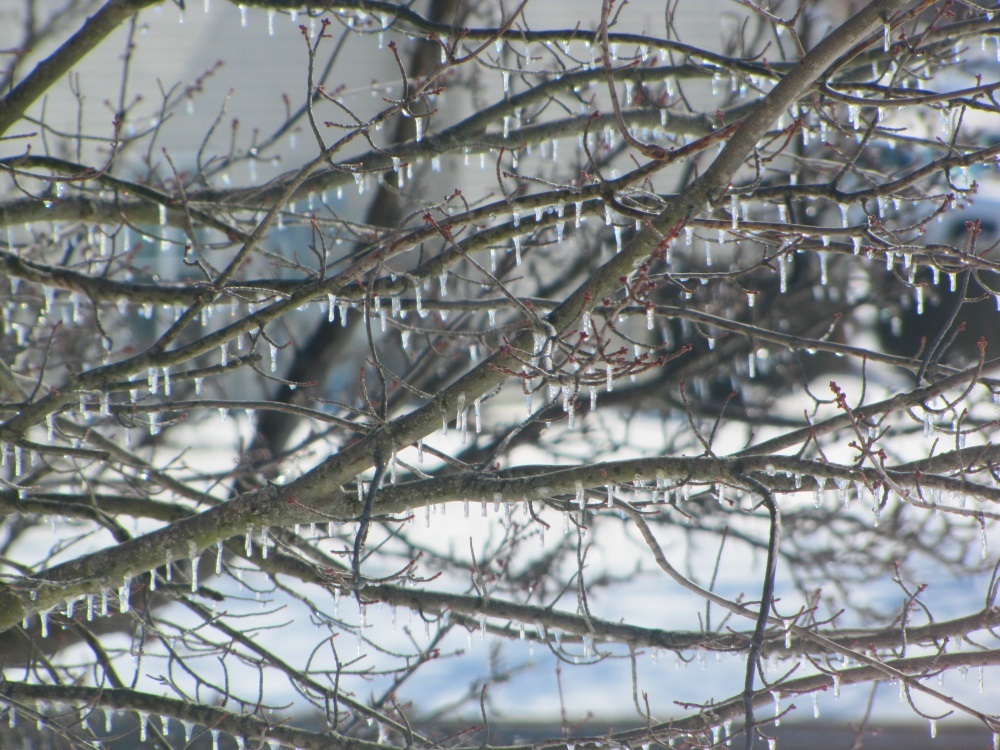 After the second snowstorm, the ice that had gathered on trees before the snow came in could still be seen. One thing I like about pristine snow though is how it makes shadows stand out so well.