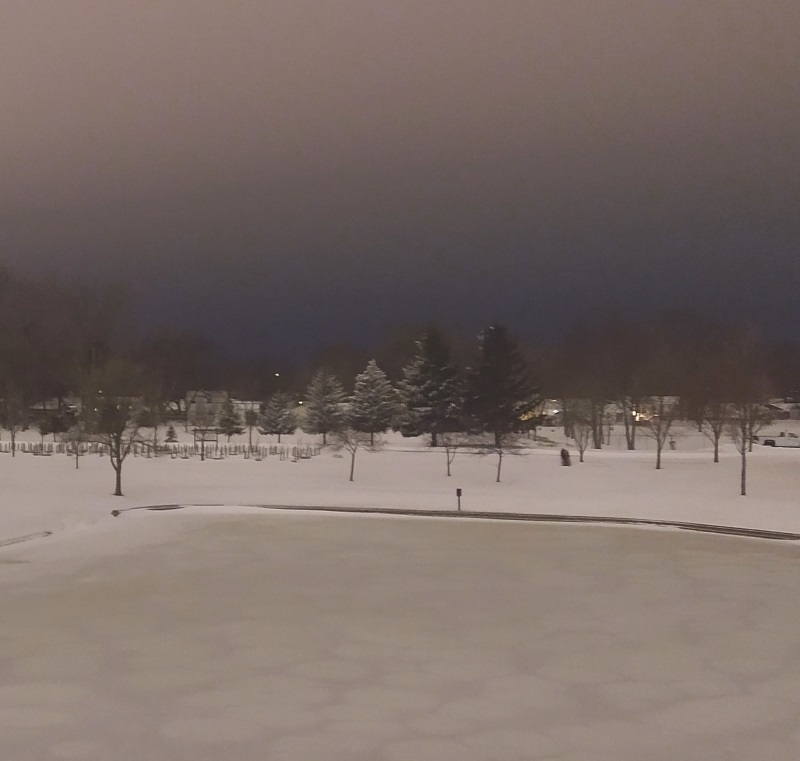 One thing I always find neat is to see how night gets affected by heavy cloud cover and snow on the ground. For one thing, it stays remarkably bright, but also one can see in these pictures that it is darkest near the ground and then lightens as you go up. I think this creates a really unusual effect. You can see the tiny tree over on the left far back despite this being taken nearly at 11 PM.