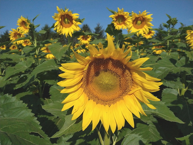 This was our standout photo from the sunflower maze last year. Don't know whether it's a genetic variation or what, but really interesting to see this one plant bucking the trend.