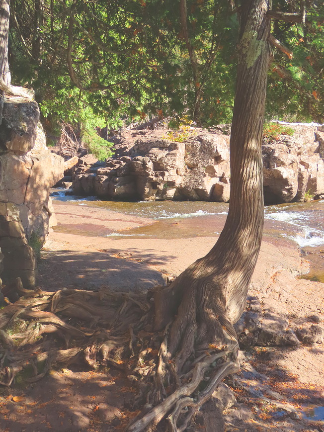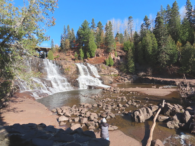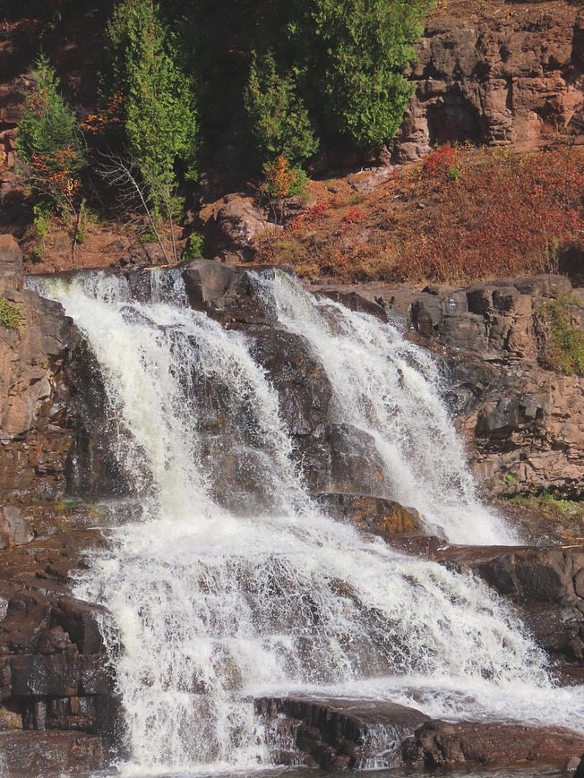 We drove up the lakefront from Duluth stopping at various sites. The first was Gooseberry Falls, which was very convenient to get to, just off from the highway and just a quarter of a mile from the parking lot.