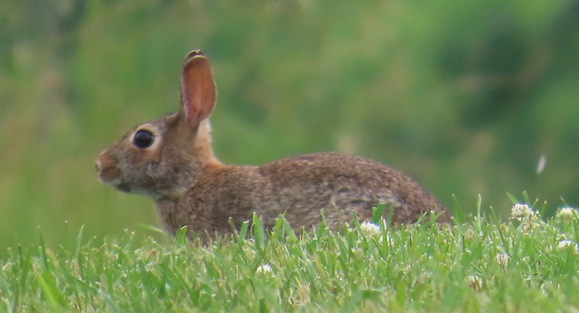 Awww. I love how the light comes through their ears. I saw one about that size yesterday. It had literally bitten off more than it could chew of some leafy plant, and paused in the middle of the path to remove some leaves from its mouth and then start over. I tried to very stealthily get my phone out of my pocket when it was successfully eating the last spray of leaves, but it noticed me and hopped into the undergrowth.