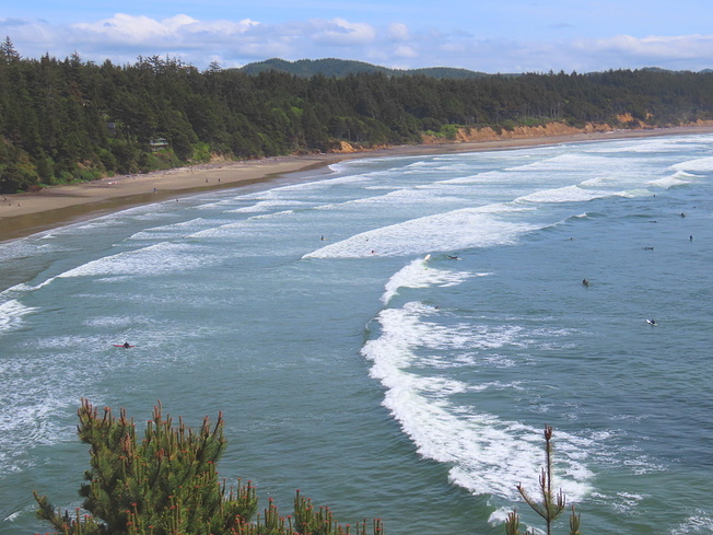 A nearby beach had lots of surfers out. I liked the look of this tree high above them.